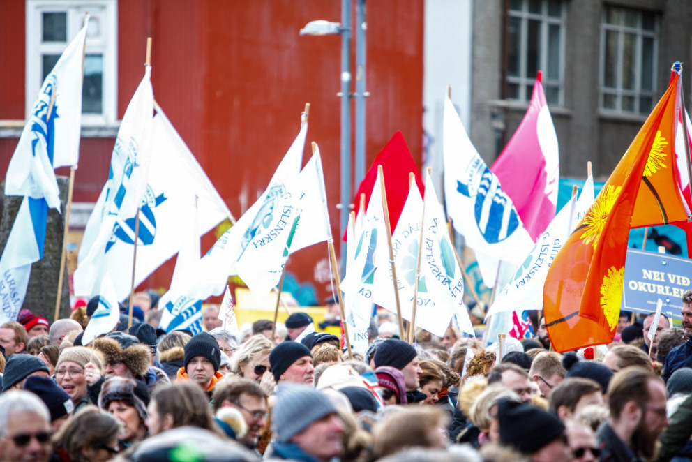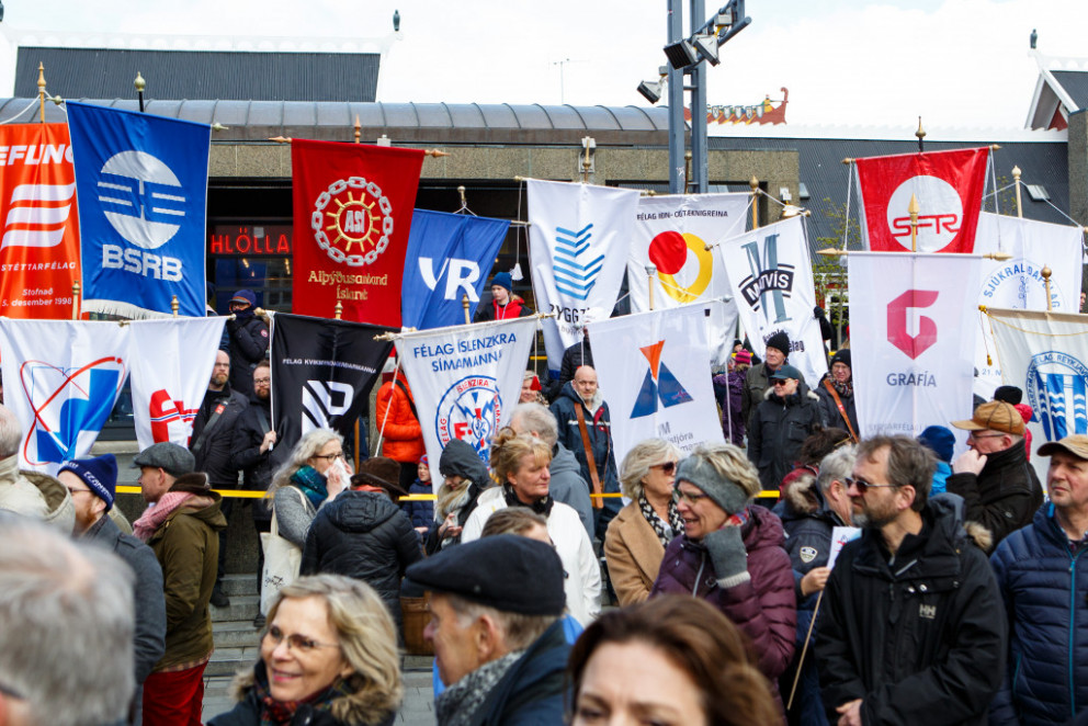 Myndir teknar í kröfugöngu, á baráttu- og samstöðufundi og í kaffiboði BSRB 1. maí 2018.