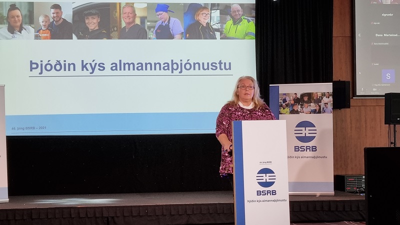 Katrín Jakobsdóttir forsætisráðherra ávarpaði 46. þing BSRB og sagði að undir ötulli forystu bandalagsins lögðu samtök launafólks hér á landi í samstarfi við norræn systursamtök sín fram þýðingarmikla skýrslu síðastliðið vor um áhrif loftslagsbreytinga á hagkerfi og vinnumarkaða með áherslu á mikilvægi réttlátra umskipta í þeim umfangsmiklu breytingum sem samfélögin standa frammi fyrir.