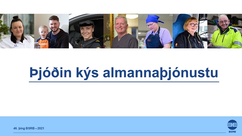 Sonja Ýr Þorbergsdóttir, formaður BSRB, lagði mikla áherslu á stöðu framlínufólks í heimsfaraldrinum í opnunarávarpi sínu á þinginu. „Nú þegar við virðumst loksins farin að sjá fyrir endann á faraldrinum þurfum við að horfa til framtíðar. Við höfum einstakt tækifæri til að móta það samfélag sem við viljum búa í eftir kófið og við eigum að grípa það tækifæri. Við vitum ekki enn hvaða ríkisstjórn mun taka við eftir kosningarnar en sjáum öll að það eru stór verkefni sem bíða,“ sagði Sonja þegar hún ávarpaði þingið.