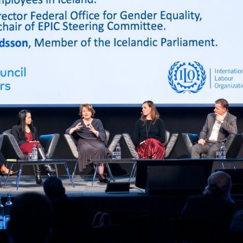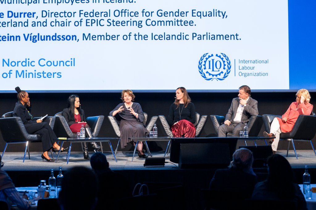 Sonja Ýr Þorbergsdóttir, formaður BSRB, tók þátt í pallborðsumræðum um jafnréttismál. Þar lagði hún áherslu á að aðgerðir fylgdu orðum til þess að tryggja raunverulegt jafnrétti á vinnumarkaði og eyða kynbundnum launamun.