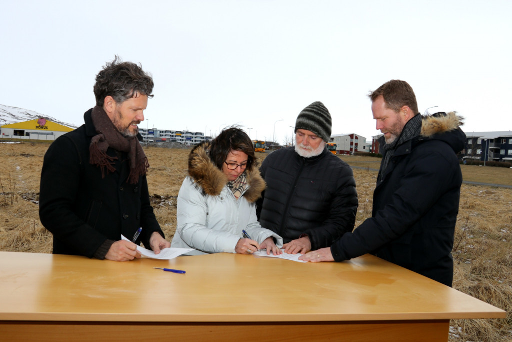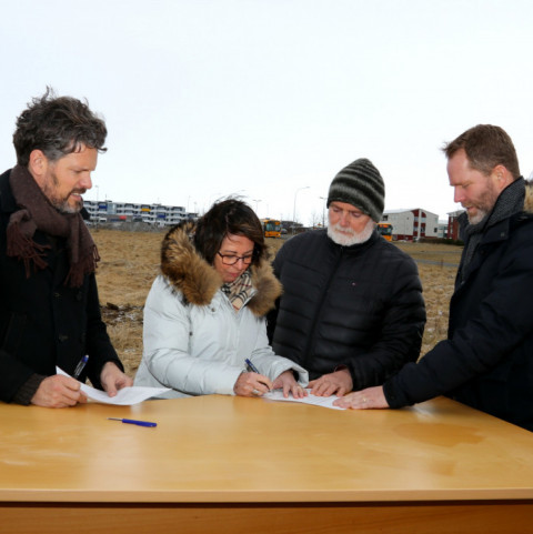 Bjarg íbúðafélag, sem stofnað er af BSRB og ASÍ, hefur fengið úthlutað byggingarrétti á þremur stöðum í Reykjavík. Elín Björg Jónsdóttir, formaður BSRB, skrifaði undir samkomulag þar að lútandi ásamt Gylfa Arnbjörnssyni, forseta BSRB, og Degi B. Eggertssyni borgarstjóra á einni lóðanna í dag.