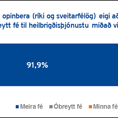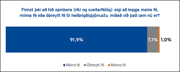 Í rannsókninni var einnig spurt um afstöðu fólks til þess hvort leggja ætti meira eða minna fé í heilbrigðisþjónustuna. Yfirgnæfandi meirihluti landsmanna, 91,9%, vill að hið opinbera leggi meira fé í heilbrigðisþjónustuna. Aðeins 1% vill draga úr framlögum til málaflokksins.
