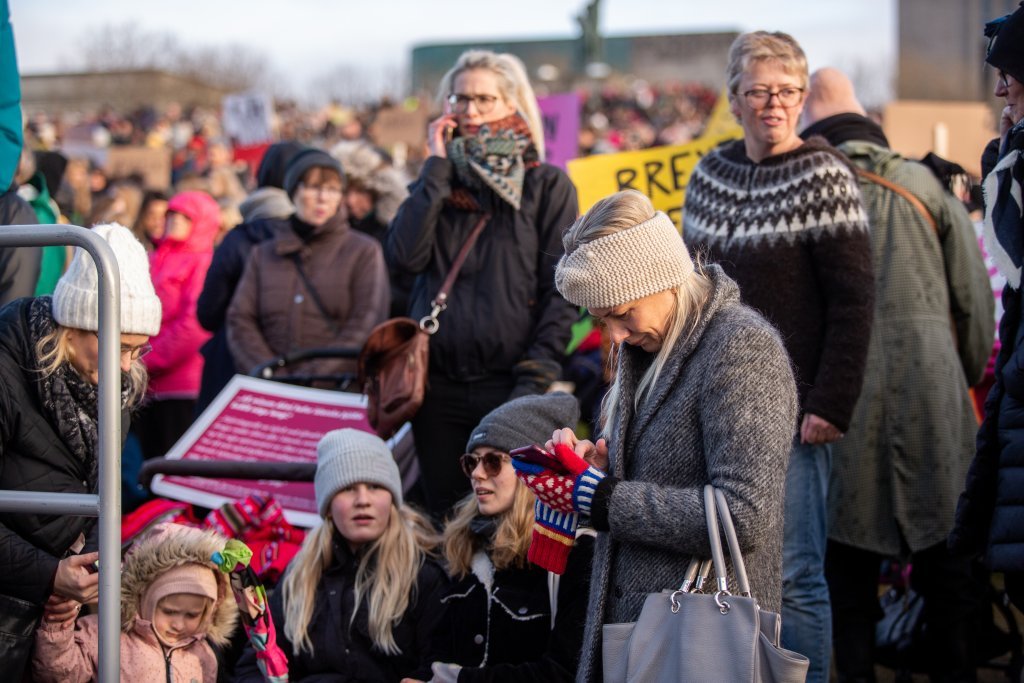 - Við skilum hér með skömminni þangað sem hún á heima til gerendanna, til atvinnurekenda, til stjórnvalda, til réttarkerfisins, til samfélagsins sem hefur látið ofbeldi og misrétti viðgangast um aldaraðir. Við lýsum yfir stuðningi við þær þúsundir kvenna sem hafa komið fram opinberlega og deilt sögum sínum af áreitni, ofbeldi og misrétti, á vinnustað og í samfélaginu öllu. Við lýsum einnig yfir stuðningi við þær konur sem ekki hafa stigið fram. Við erum hér fyrir ykkur, fyrir okkur öll!