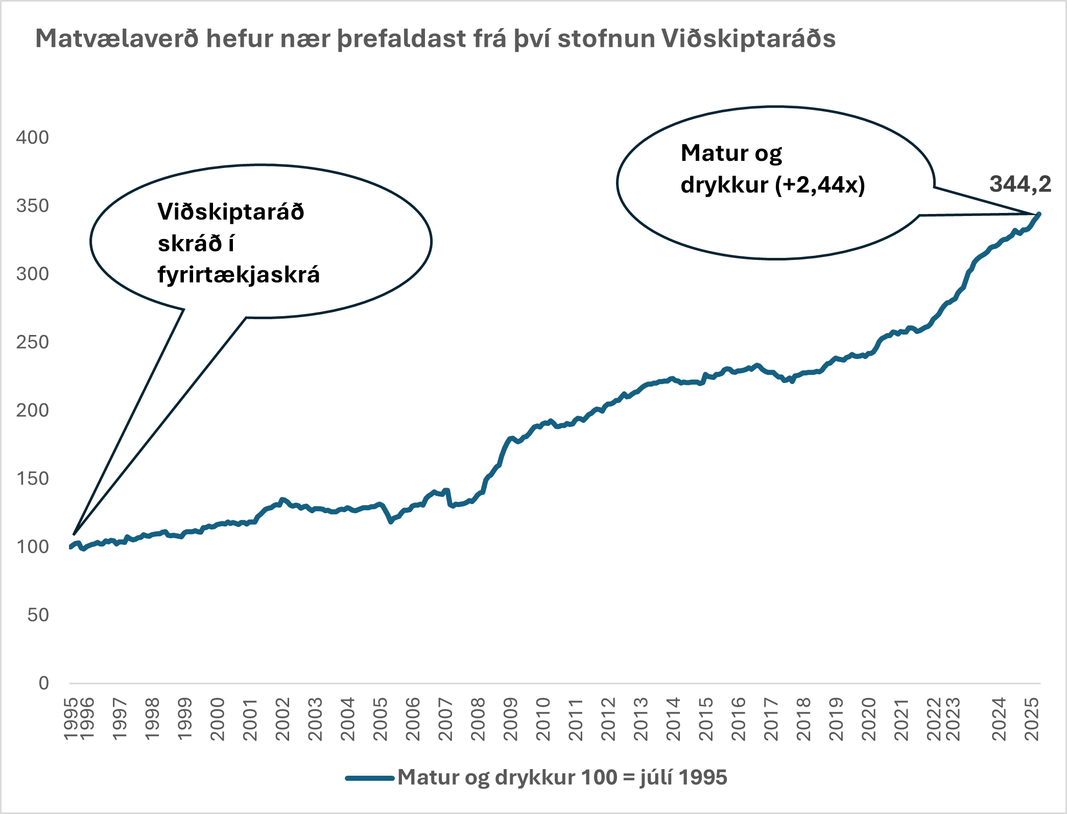 „Skoðun“ Viðskiptaráðs ber sannarlega nafn með rentu og útgáfan byggir á órökstuddum kreddum en ekki raunveruleikanum. Hins vegar má benda á að matvælaverð hefur nær þrefaldast síðan að fjöldi íslenskra fyrirtækja ákvað að stofna saman Viðskiptaráð og skráðu það í fyrirtækjaskrá þann 1. júlí 1995. Það mætti hafa þá „skoðun“ að kostnaði fyrirtækjanna sem að ráðinu standa við að greiða fyrir vinnu af þessu tagi hafi verið velt beint út í verðlag.