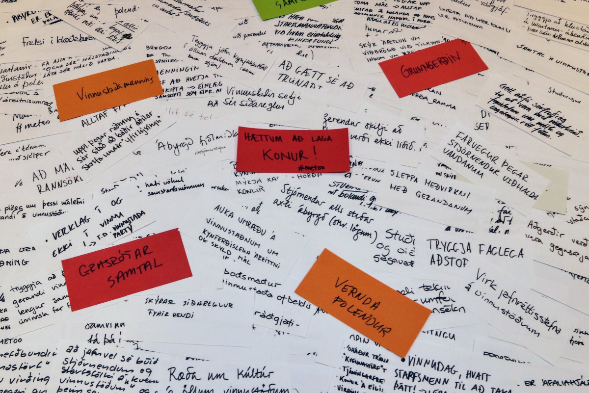 Í skýrslu sem unnin hefur verið upp úr ábendingum fundargesta, sem komu úr fjölmörgum #metoo hópum kvenna, kemur fram sú krafa að allir taki þátt í því að laga samfélagið.