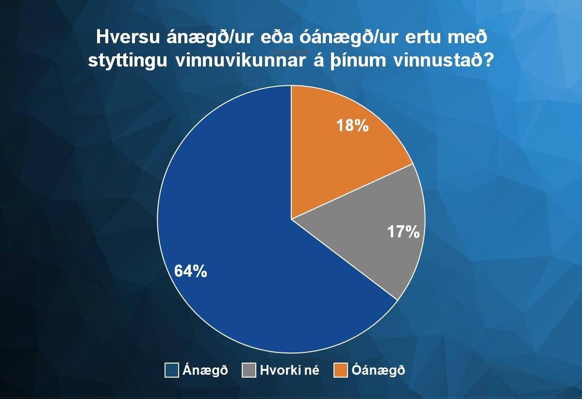 Alls segjast um 64 prósent opinberra starfsmanna mjög eða frekar ánægð með styttinguna. Þá segjast um 17 prósent hvorki ánægð né óánægð og um 18 prósent segjast mjög eða frekar ósátt.