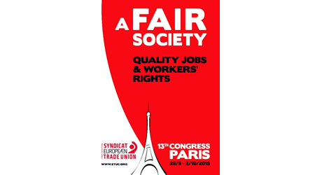 Þrettánda þing Evrópusambands verkalýðsfélaga (ETUC) var sett í París í morgun og stendur það fram á föstudag. Yfirskrift þingsins er „Réttlátt samfélag – góð störf og réttindi launafólks“.