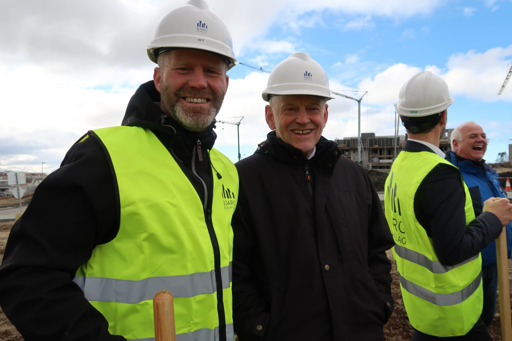 Dagur B. Eggertsson borgarstjóri og stjórnarmenn úr Bjargi íbúðafélagi tóku í dag fyrstu skóflustungurnar að 83 nýjum leiguíbúðum við Urðarbrunn 130 til 132 í Úlfarsárdal í Reykjavík.