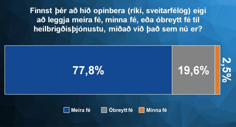 Afgerandi meirihluti landsmanna, nærri átta af hverjum tíu, vilja að ríkið verji meira fé í heilbrigðiskerfið en nú er gert samkvæmt niðurstöðum könnunar.