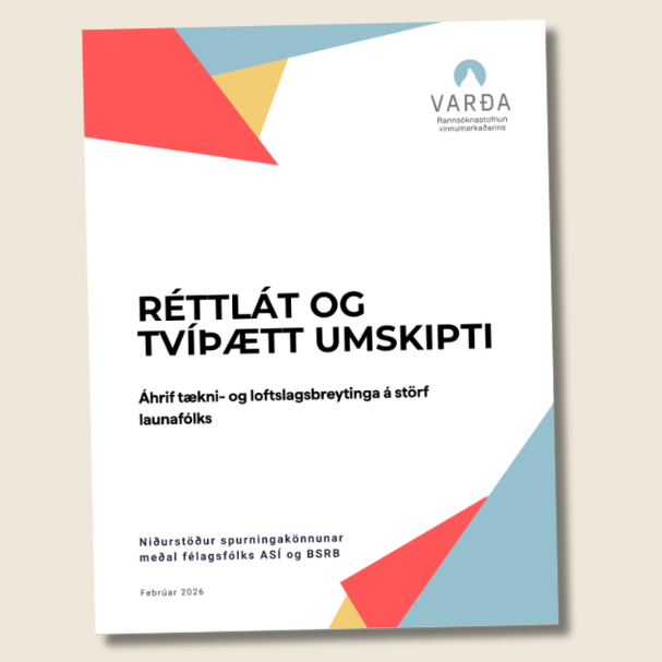 Í nýrri skýrslu Vörðu – Rannsóknastofnunar vinnumarkaðarins kemur fram að 23% launafólks innan aðildarfélaga ASÍ og BSRB telji að starf sitt hafi breyst eða muni breytast vegna nýrrar tækni eða loftslagsbreytinga. Þegar sjónum er beint að þeim sem eru í störfum sem hafa breyst eða eru líkleg til að breytast, sýna niðurstöðurnar að áhrifin dreifast ójafnt og að sumir hópar standi verr að vígi en aðrir.