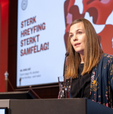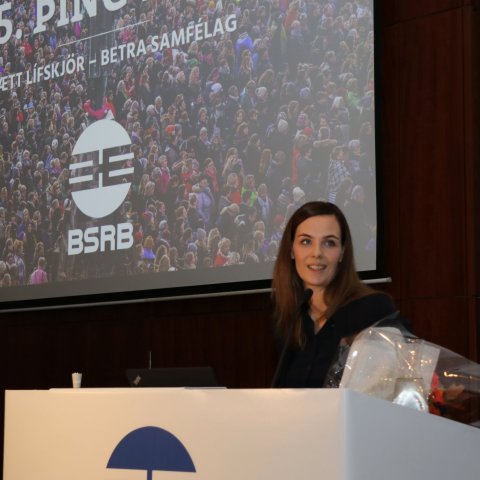 - 3Sonja Ýr Þorbergsdóttir var í dag endurkjörin formaður BSRB til næstu þriggja ára á 46. þingi BSRB með 97,22 prósent greiddra atkvæða. Þingið, sem nú er nýlokið, var rafrænt vegna sóttvarnaraðgerða þegar það var boðað og var allri málefnavinnu ... forsætisráðherra ávarpaði 46. þing BSRB og sagði að undir ötulli forystu bandalagsins lögðu samtök launafólks hér á landi í samstarfi við norræn systursamtök sín fram þýðingarmikla skýrslu síðastliðið vor um áhrif loftslagsbreytinga á hagkerfi og vinnumarkaða ... sem til stóð að fara í á þinginu frestað þar til á framhaldsþingi. Sonja var ein í framboði til formanns, en hún var fyrst kjörin formaður bandalagsins á 45. þingi BSRB í október 2018. Á þinginu var Þórarinn Eyfjörð, formaður Sameykis, kjörinn í embætti ... Sonja þegar hún ávarpaði þingið. „Eitt af því sem BSRB hefur lagt þunga áherslu á undanfarið er staða þeirra stóru hópa opinberra starfsmanna sem hafa verið í framlínunni í heimsfaraldrinum. Í rúmlega eitt og hálft ár hefur álagið á þennan hóp ... fyrir. . Katrín Jakobsdóttir forsætisráðherra ávarpaði þing BSRB.. . „Fyrir liggur að nauðsynlegar aðgerðir og aðlögun vegna loftslagsbreytinga hafa í för með sér grundvallar breytingar á framleiðslu-, neyslu- og samgönguháttum sem breyta munu