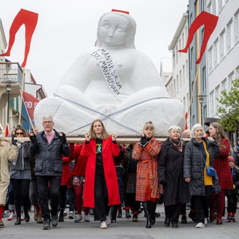 - 18á íslenskt samfélag. Þar sem árið 2025 er Kvennaár, ákvað fulltrúaráð verkalýðshreyfingarinnar að bjóða Rauðsokkum að ganga fremst í göngunni. Þá var styttan eftirminnilega endursköpuð – sem tákn um samfellu og innblástur baráttunnar