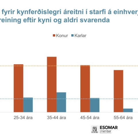 - 16Um það bil tvær af hverjum fimm konum hafa orðið fyrir kynferðislegri áreitni í starfi á lífsleiðinni samkvæmt könnun Gallup sem kynnt var á fundi Vinnueftirlits ríkisins um áreitni á vinnustöðum nýverið. Samkvæmt niðurstöðum könnunarinnar, sem gerð var dagana 8. til 17. nóvember 2017, hafa um það bil 40 prósent kvenna og rúmlega 10 prósent karla orðið fyrir kynferðislegri áreitni á vinnustöðum á einhverjum tímapunkti. Mikill munur var á tíðni áreitni eftir aldri. Þannig hefur