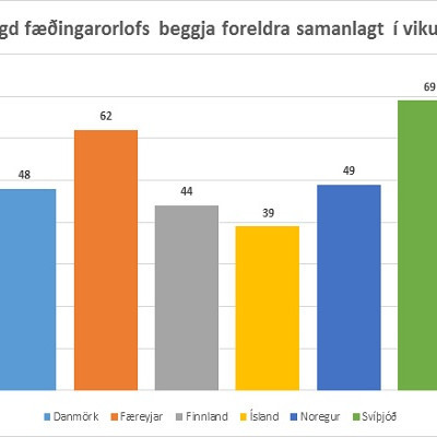 - 12Íslenskir foreldrar hafa mun lakari réttindi til greiðslna í fæðingarorlofi en foreldrar á hinum Norðurlöndunum. Þetta kemur fram í samantekt BSRB sem gerð var opinber í umsögn bandalagsins ... var að hvort foreldri eigi rétt á fimm mánaða orlofi, en að auki deili foreldrar tveimur mánuðum sín á milli. Sameiginlegur réttur verði því tólf mánuðir. . Hin Norðurlöndin standa framar. Í umsögn BSRB um frumvarpið má finna ítarlega ... samantekt á rétti foreldra til fæðingarorlofs á Norðurlöndunum. Þannig er lengd orlofsins samanlagt 39 vikur á Íslandi, 44 í Finnlandi, 48 í Danmörku og 49 í Noregi. Orlofið er mun lengra í Færeyjum, 62 vikur, en lengst í Svíþjóð, 69 vikur, eða 16 mánuðir .... . Samanburður á hámarksgreiðslum í orlofi er erfiður því í sumum Norðurlandanna lækka greiðslur eftir því sem líður á orlofið. Þegar greiðslur í upphafi fæðingarorlofs eru skoðaðar má sjá að hámarksgreiðslan er lægst í Danmörku, rúmlega 342 þúsund krónur ... á mánuði. Það er umtalsvert lægra en þakið á Íslandi, sem eru 370 þúsund krónur. Á hinum Norðurlöndunum eru hámarksgreiðslur mun hærri. Þær eru um 437 þúsund í Svíþjóð, 474 þúsund í Færeyjum, 640 þúsund í Finnlandi og 673 þúsund í Noregi