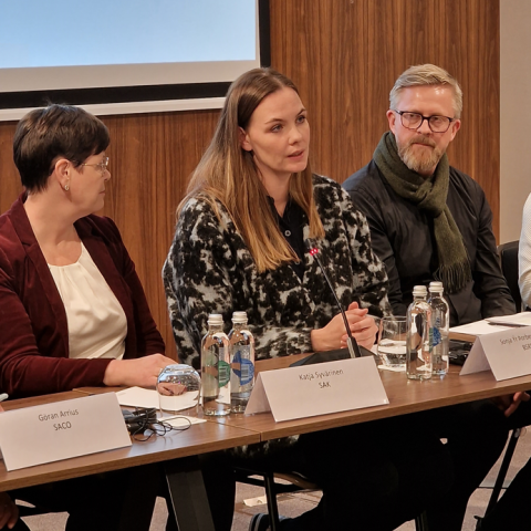 - 20og þá sem starfa utan dagvinnutíma og um helgar.. Fyrr í dag kynnti forysta allra samtaka launafólks á Norðurlöndunum sem eiga aðild að Norræna verkalýðssambandinu (NFS) bréf sem hefur verið sent ... ríkisstjórn Finnlands þar sem árásum á samningsfrelsi launafólks og kjör þess er harðlega mótmælt. Bæði BSRB og ASÍ eru aðilar að NFS og skrifa formenn beggja samtaka undir bréfið ásamt öðru forustufólki launafólks á Norðurlöndunum ... verkalýðshreyfingarinnar og vinnumarkaðskerfisins í Finnlandi. Í framtíðinni kann verkalýðshreyfingin á hinum Norðurlöndunum að standa frammi fyrir samskonar árásum. Allir forystumennirnir lögðu áherslu á að það eru sameiginlegir hagsmunir launafólks á Norðurlöndunum ... skerðingum og breytingum á vinnumarkaðslöggjöfinni sem kynntar hafa verið mun það hafa ófyrirséðar samfélagslegar afleiðingar, bæði í Finnlandi og öðrum Norðurlöndum. Samningaviðræður á jafnræðisgrunni milli aðila ... til stöðunnar Finnlandi. Verkalýðshreyfingin er reiðubúin til að axla ábyrgð og leita sameiginlegra lausna með samráði og samstarfi. NFS sameinar heildarsamtök launafólks á Norðurlöndum og eru fulltrúar 9 milljóna félagsmanna