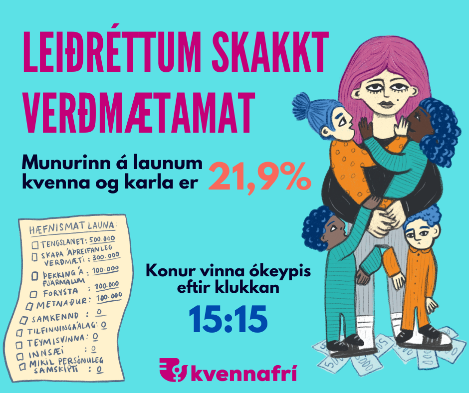 Konur búa enn við launamisrétti 60 árum eftir að launajafnrétti var leitt í lög. Íslenskar og erlendar rannsóknir sýna að kynskiptur vinnumarkaður er ein helsta skýringin á kynbundnum launamun. Síðustu ár hefur ýmislegt áunnist í vinnu gegn kynbundnum launamun en áherslan hefur verið á að leiðrétta launamun innan vinnustaða, til dæmis með jafnlaunastaðlinum. Þó það sé góðra gjalda vert er jafnlaunastaðallinn ekki verkfæri sem tekur á því grundvallar misrétti sem viðgengst í samfélaginu, hann leiðréttir ekki skakkt verðmætamat kvennastétta þvert á atvinnugreinar og vinnustaði. Því verður að beina kastljósinu að því að leiðrétta laun kvennastétta út frá raunverulegu verðmæti þeirra og þeirri verðmætasköpun sem störfin skila.