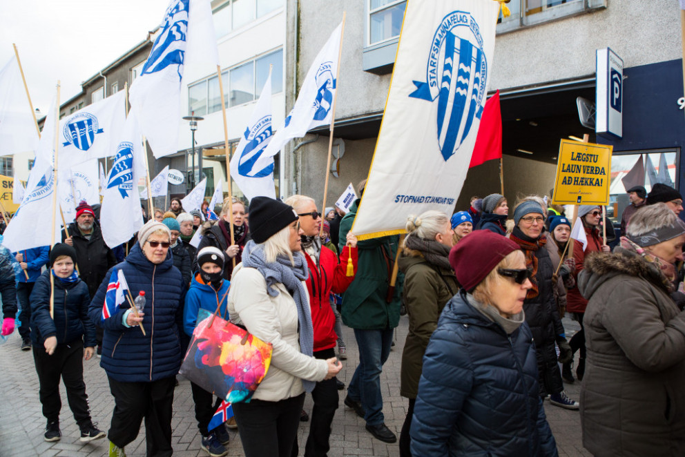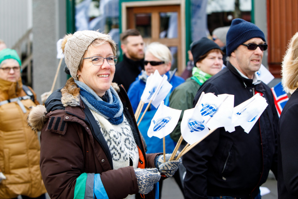 Myndir teknar í kröfugöngu, á baráttu- og samstöðufundi og í kaffiboði BSRB 1. maí 2018.